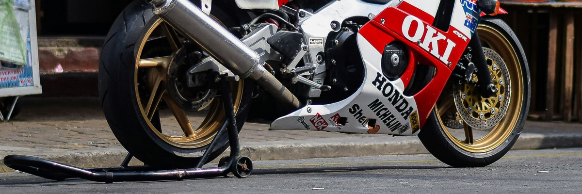 You often have separate paddock stands for your front and rear wheels. After all, your front wheel is almost always narrower than your rear wheel, which means that the width of the stands also differs. We mentioned earlier that you can often lift a motorbike with these stands by using bobbins.