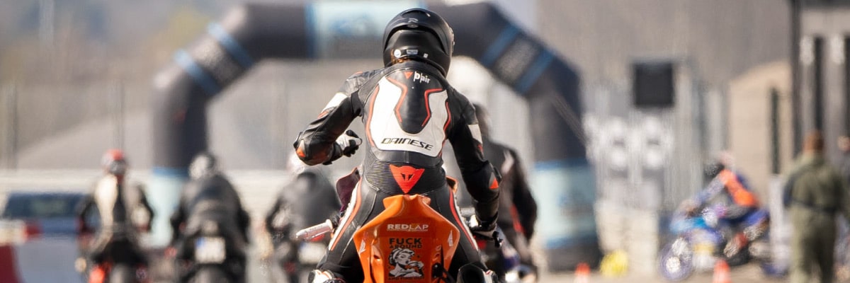 Toen ik opstond, merkte ik dat ik me een beetje als een Michelin poppetje voelde. Alsof je iets te strakke kleding aan hebt. Toen had ik pas in de gaten dat de airbag in mijn Dainese Misano pak was afgegaan. Het voelt zeker niet onprettig of té strak, dus wees niet bang. Je wordt niet ineens samengeknepen in je pak.